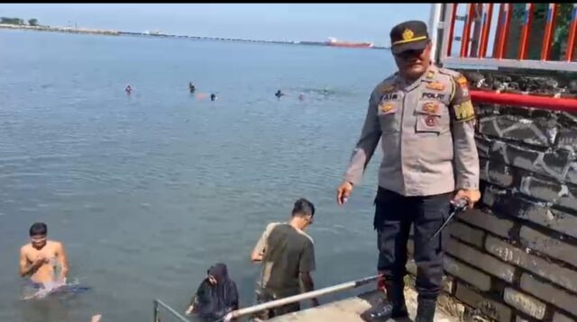 Air Laut Mulai Pasang, Polres Probolinggo Kota Beri Himbauan ke Pengunjung Pelabuhan Mayangan