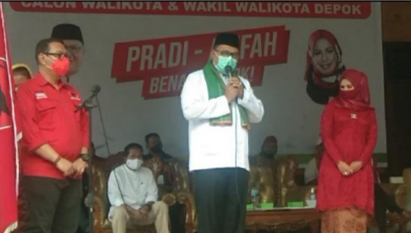 Nurodji, Ketua tim pemenangan Pradi-Afifah dalam kata Sambutannya menegaskan, “Saatnya kota Depok selama 15 tahun yang tidak pernah bangkit, juga penuh kepura-puraan. Pura-pura peduli sama anak padahal tak ada satupun lokasi rumah singgah anak yang milik pemkot, pura-pura berbudaya bahkan pura-pura pendapat penghargaan padahal semuanya itu beli. Stop kita menghidupi Kota Depok ini dengan penuh kepura-puraan. Sekarang juga “Depok Bangkit”, dengan bergabungnya sejumlah Partai dan Ormas, pihaknya yakin pasangan tersebut akan membawa harapan baru untuk untuk Kota Depok yang lebih baik,” tegasnya Nurodji.