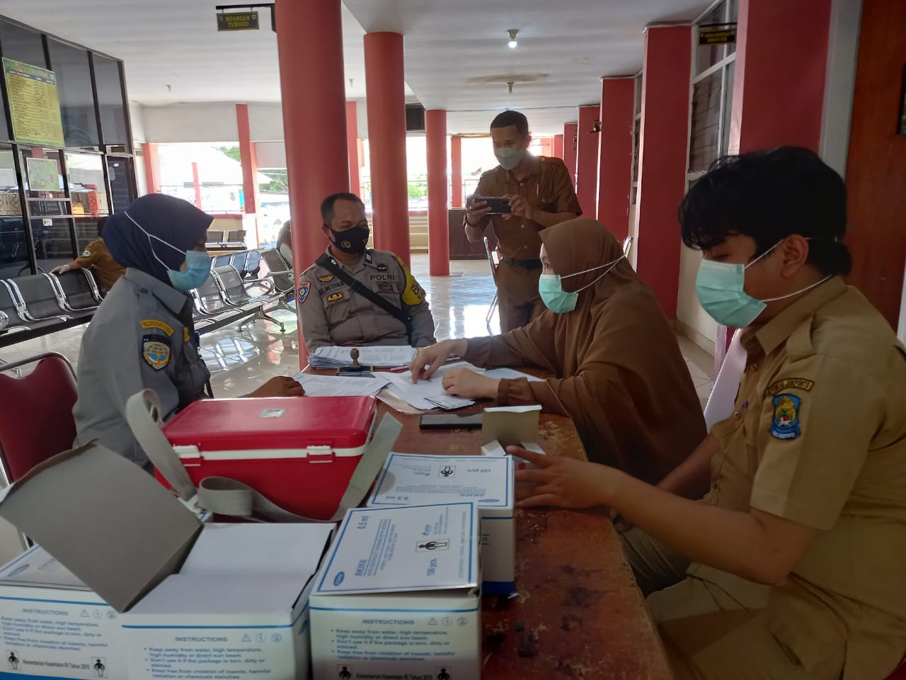 Giat pantau yang dilakukan 2 Kamtibmas bertujuan untuk memantau pelaksanaan Vaksinasi yang dilakukan oleh dinas kesehatan yang berlokasi di Kantor Puskesmas Bontosunggu Kota, Kelurahan Empoang, Kecamatan Binamu, Kabupaten Jeneponto, Selasa (13/07/2021) 09.00 Wita s/d selesai.