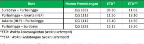 Penerbangan Surabaya – Purbalingga dan Purbalingga – Jakarta (Halim Perdanakusuma) selanjutnya dilayani dua kali dalam seminggu yakni pada hari Kamis dan Sabtu menggunakan armada ATR 72-600.