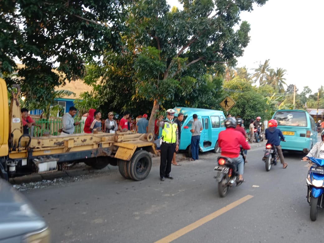 Kasat Lantas, Iptu Ida Ayu Made Ari Suastini, SH bersama Kanit Laka Aiptu Muh Ali dan Kanit Dikyasa Bripka Ismail. Setelah mendapat Informasi dari Masyarakat, Piket Pos Pelayanan Lalu Lintas Terpadu langsung menuju TKP melakukan evakuasi Kendaraan.