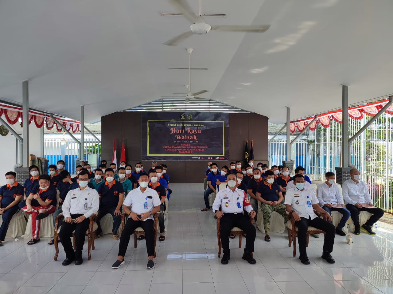 PENJURU.ID | TANGERANG- 26 Mei 2021 Sebanyak 56 orang warga binaan pemasyarakatan (WBP) beragama Budha mendapat remisi khusus Hari Raya Waisak 2565 BE yang jatuh pada hari Rabu 26 Mei 2021. Penyerahan Remisi Khusus Hari Raya Waisak diberikan secara simbolis dan dilakukan secara virtual yang terpusat di Aula Kantor Wilayah Kementerian Hukum dan HAM Banten.