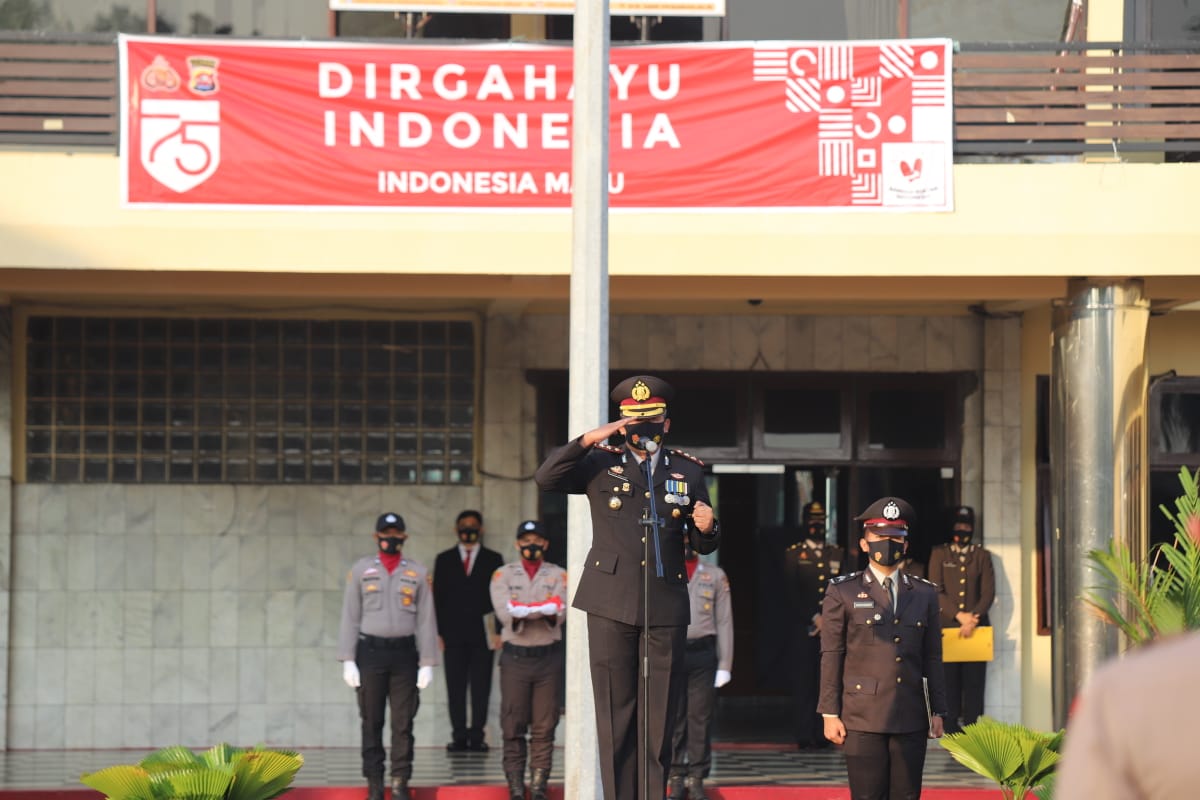 PENJURU.ID | CILEGON – Polres Cilegon menggelar Upacara Bendera HUT Kemerdekaan Republik Indonesia yang ke-75 Tahun 2020 di lapangan Apel Polres Cilegon. Senin (17/08/2020).