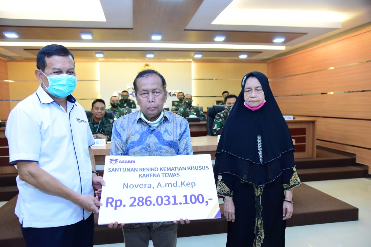 “Sementara santunan Asabri ahli waris dari almarhumah Novera, Amd.Kep, 36 tahun, (Perawat di Instalasi Rawat Jalan RSPAD Gatot Soebroto), yang meninggal dunia pada 11 April 2020 lalu, diterima oleh kedua orang tuanya, yakni Bapak Supardi dan Ibu Ofnetty, dengan nilai Rp. 286.031.100,”imbuhnya.