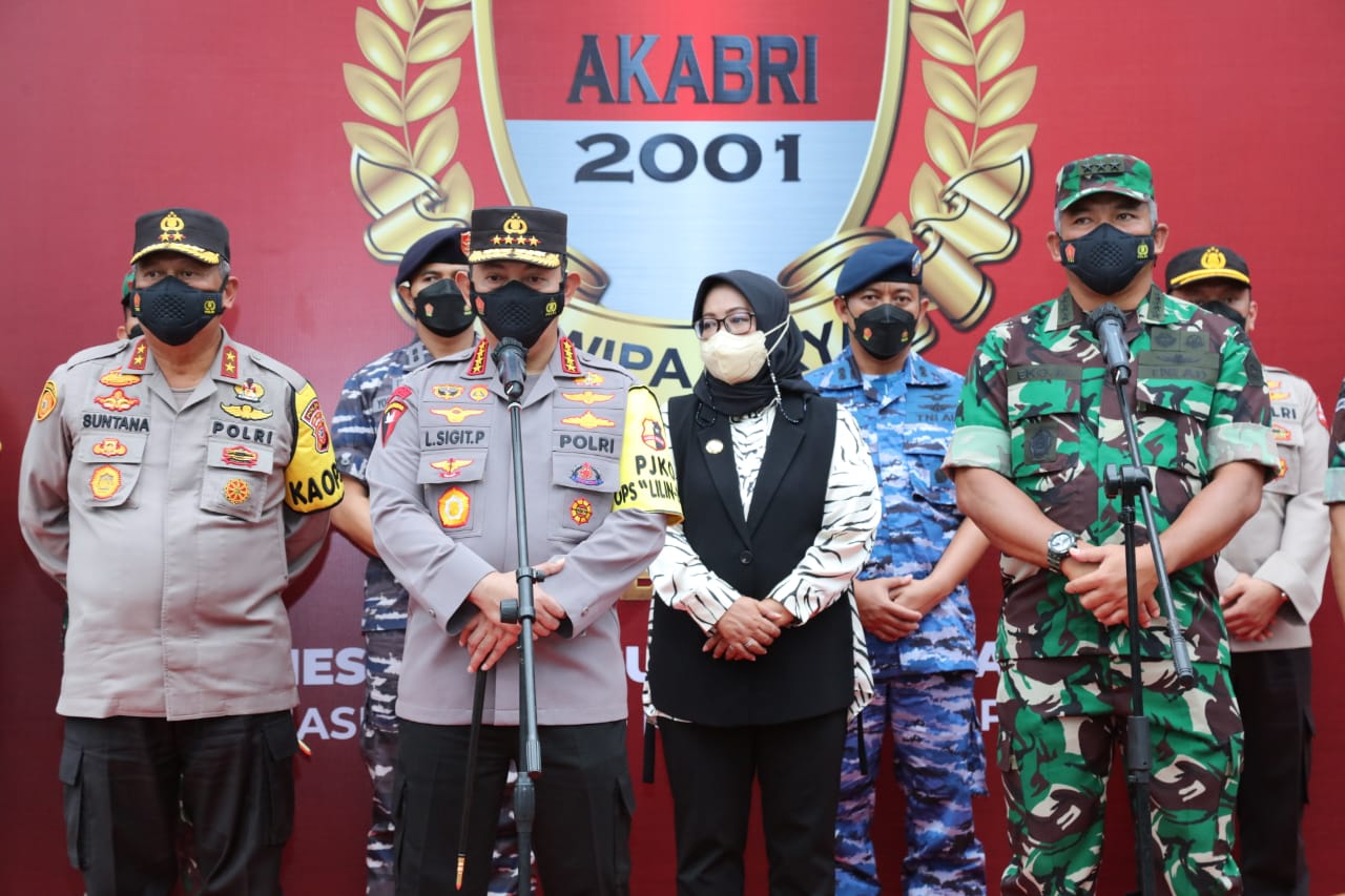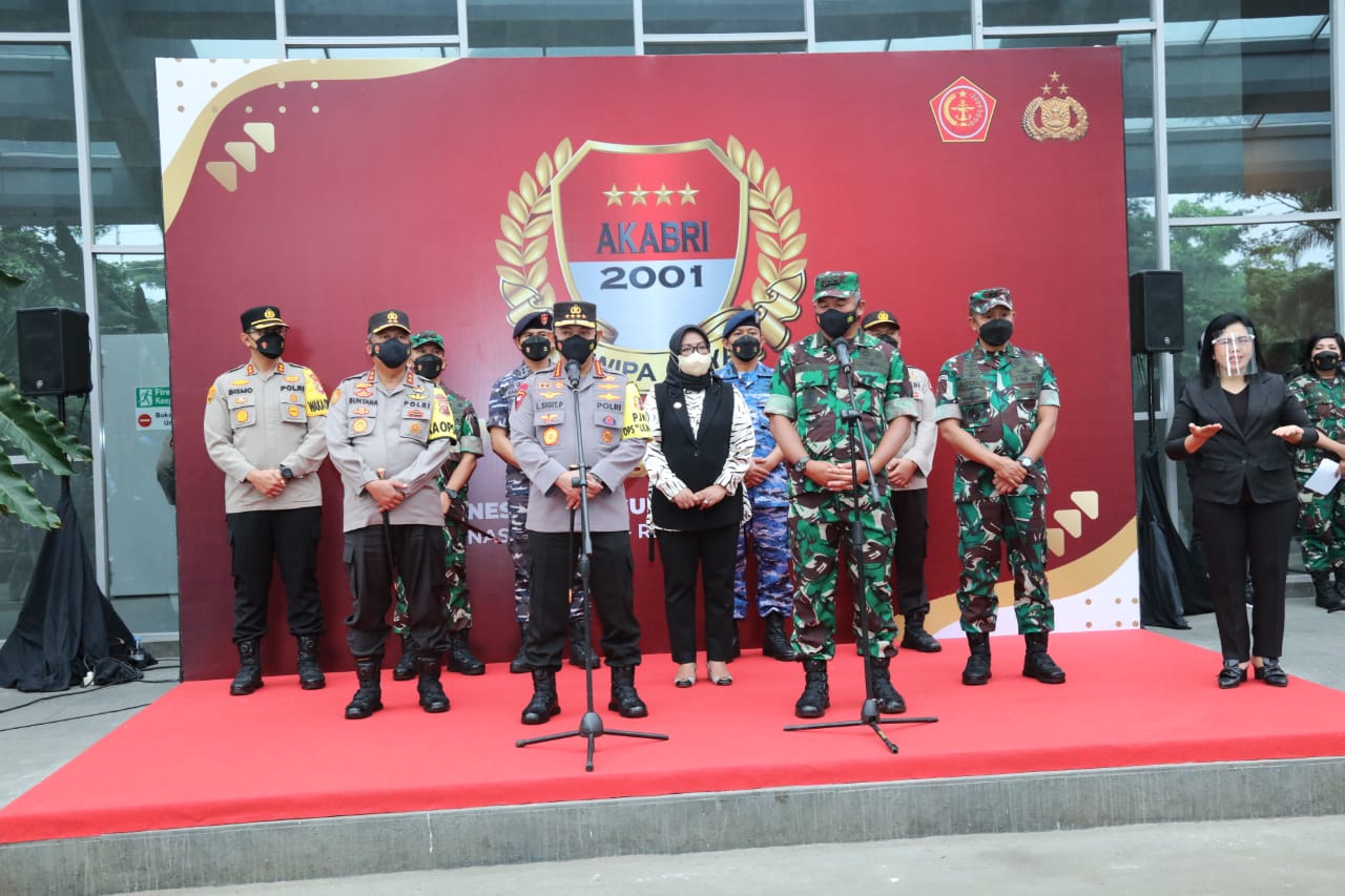 PENJURU. ID | Bogor – Kapolri Jenderal Listyo Sigit Prabowo menghadiri acara puncak 20 tahun bakti untuk negeri alumni Akabri 2001 atau Dwipa Arya yang menggelar kegiatan vaksinasi massal, pemberian bantuan sosial, pembangunan dan renovasi 11 tempat ibadah di Sentul International Convention Center (SICC), Kabupaten Bogor, Jawa Barat, Selasa (28/12).