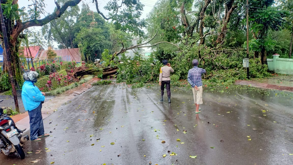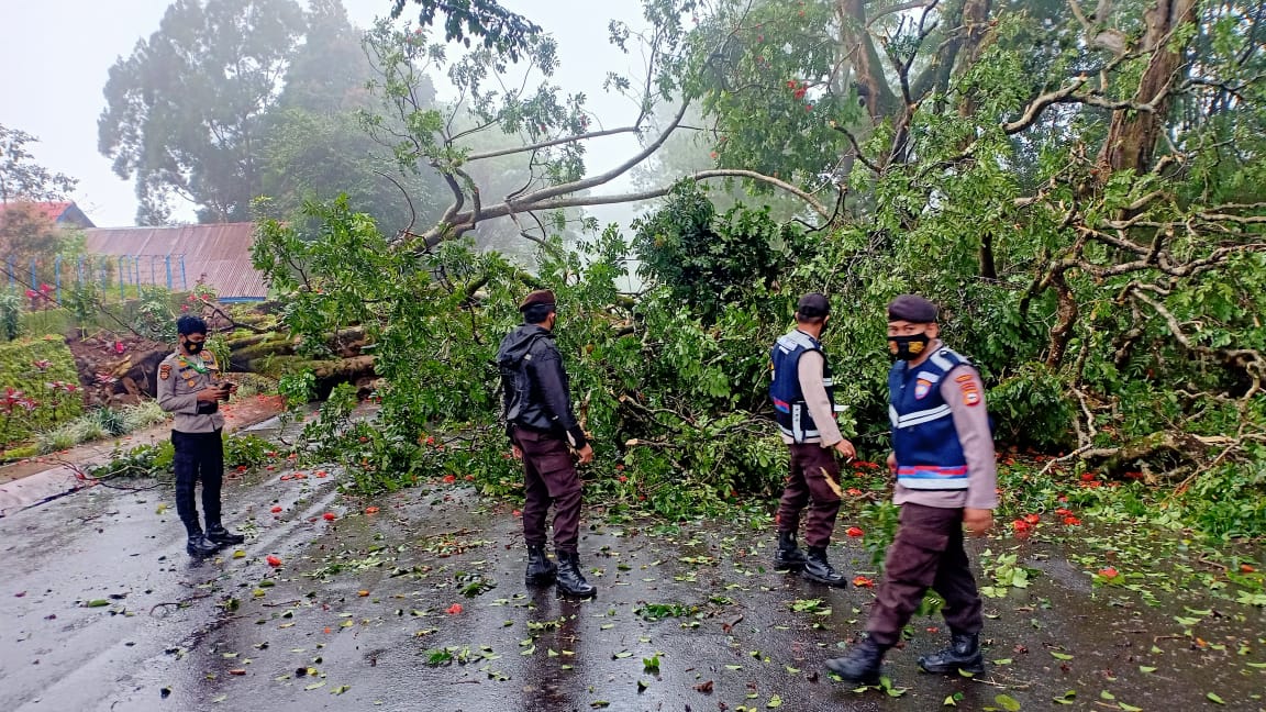 “Mendapati informasi dari warga adanya pohon tumbang pihak kepolisian langsung bertindak cepat menuju TKP untuk melihat langsung situasi dan kondisinya,”Kata IPTU Hasan.