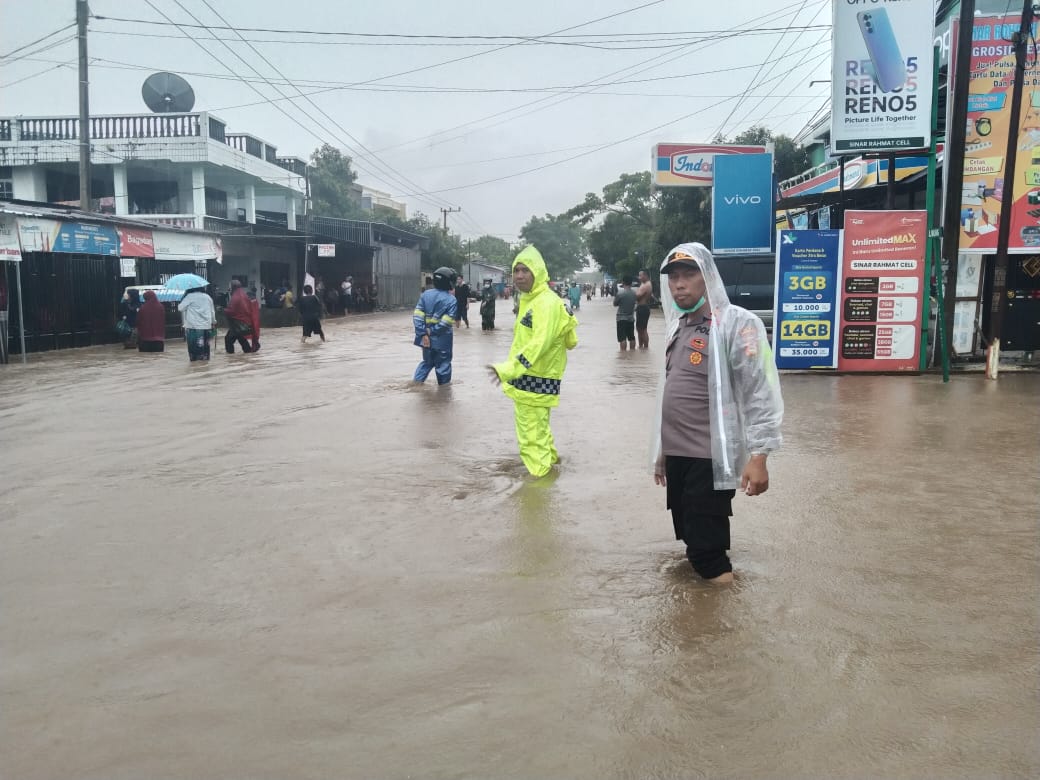 Menurut AKP Syahrul. Air meluap kepermukaan kantor dan jalan diperkirakan setinggi 40 s/d 60 Cm, namun semua kendaraan masih bisa melintas, meskipun beberapa kendaraan menunggu surut air banjir tersebut.