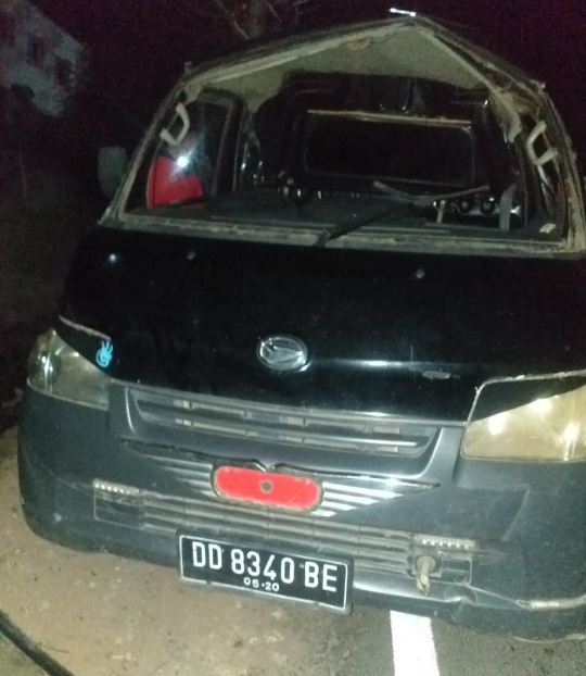 AKP Syahrul menjelaskan Kerusakan material kendaraan diantaranya terlepas kaca besar bagian depan, peot pada platpon bagian atas, bam belakang sebelah kiri pecah hingga kerugian ditaksir sekitar Rp- 5.000.000 (lima juta rupiah)