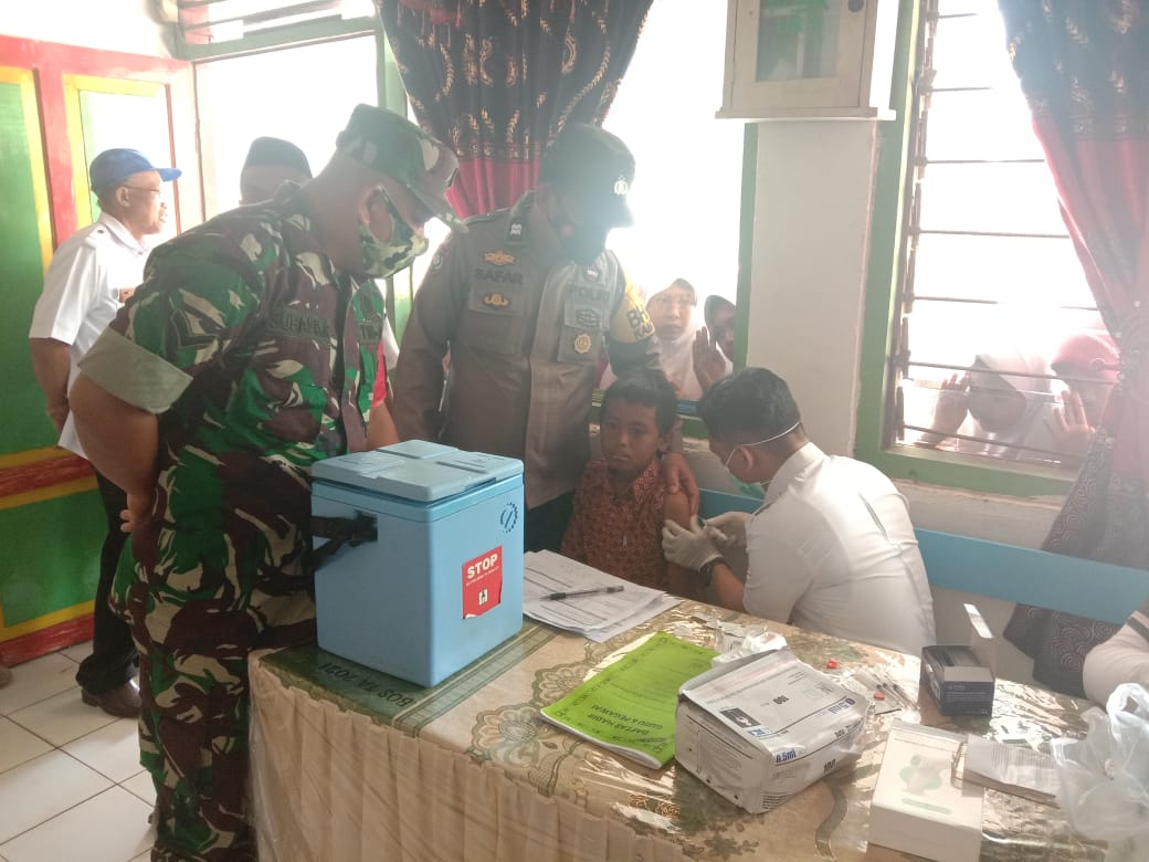 Kegiatan tersebut dalam pantauan Bhabinkamtibmas desa datara Aiptu Safaruddin Y bersama Babinsa Serda Suhafid mengawal pemberian vaksinasi covid-19 bagi anak usia 6-12 tahun yang dilaksanakan oleh vaksinator dari puskesmas bontoramba, Rabu (9/3/2022)