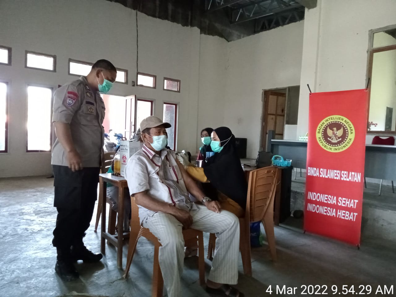 PENJURU. ID | Jeneponto – Bhabinkamtibmas Aiptu Sahabuddin melaksanakan sambang diwilayah binaan dengan melakukan pemantauan dan pengawasan kegiatan vaksinasi covid-19 bagi masyarakat Desa Kareloe, Kecamatan Bontoramba, Jumat (04/03/2022)