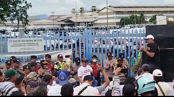 PENJURU.ID I Kabupaten Bekasi – Puluhan Rukun Warga (RW) yang tergabung dalam Forum Ketua RW bersama warga Kelurahan Jatimulya menggelar aksi damai di depan PT Suzuki Indomobil Motor yang berlokasi di Jalan Diponegoro, Kelurahan Jatimulya, Kecamatan Tambun Selatan, Kabupaten Bekasi, Kamis (18/12/2025) pagi.