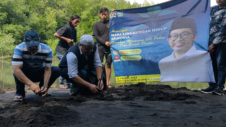 PENJURU.ID | Probolinggo – Peringati Hari Lingkungan Hidup Sedunia (HLHS), pemuda Relawan Faisol Riza melakukan aksi penanaman pohon mangrove dan bersih-bersih pantai.