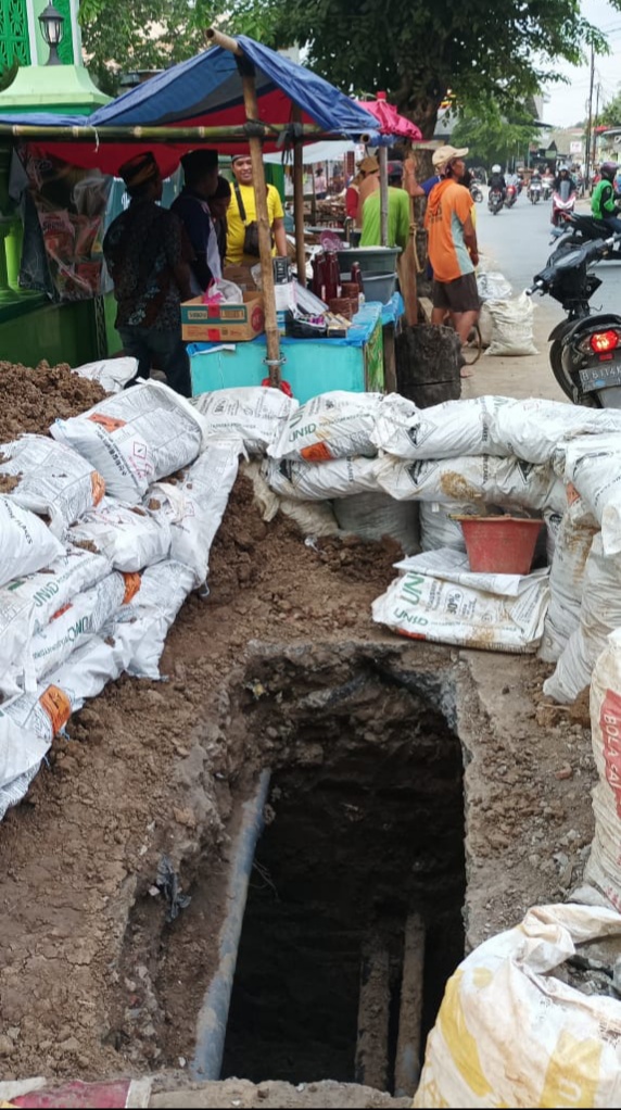 Akibat galian tersebut, selain dampak kerugian para pedagang yang omsetnya menurun. Tumpukan tanah galian juga memakan badan jalan yang mengakibatkan kemacetan.
