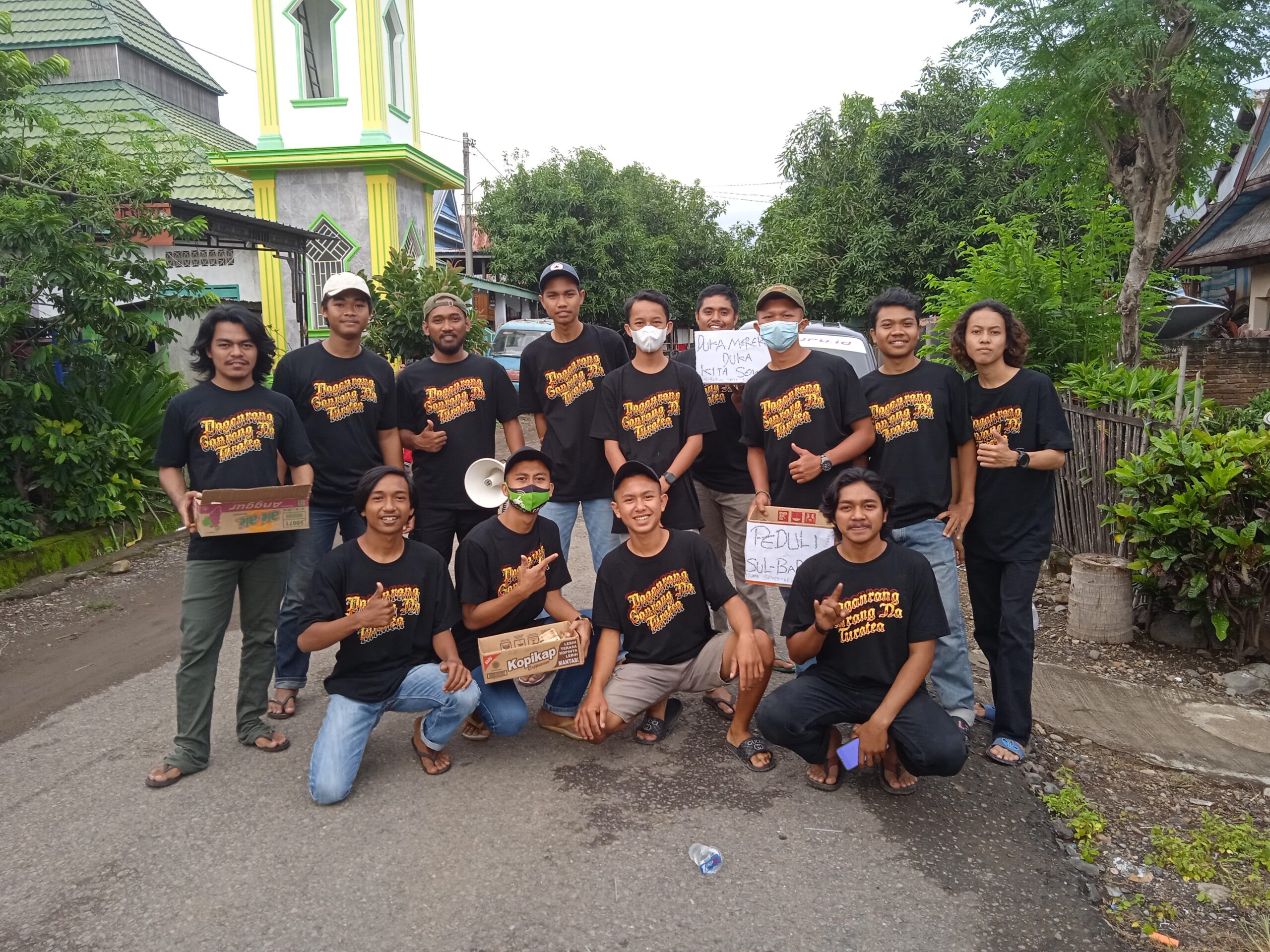 Orasi tersebut dimpin ketua Tim Paganrang Ganrangna Turatea Kecamatan Turatea, Bayu bersama anggotanya dengan menggunakan Kardus berbentuk kotak Amal Bertuliskan” Duka Mereka Duka Kita Semua” juga bertuliskan” Peduli Sulbar”