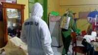 Penyemprotan disinfektan di fokuskan di wilayah RT 04/02 Kelurahan Sukaasih menggunakan alat penyemprotan manual yang dilakukan oleh Babinsa Suka’asih Serda Slamet.