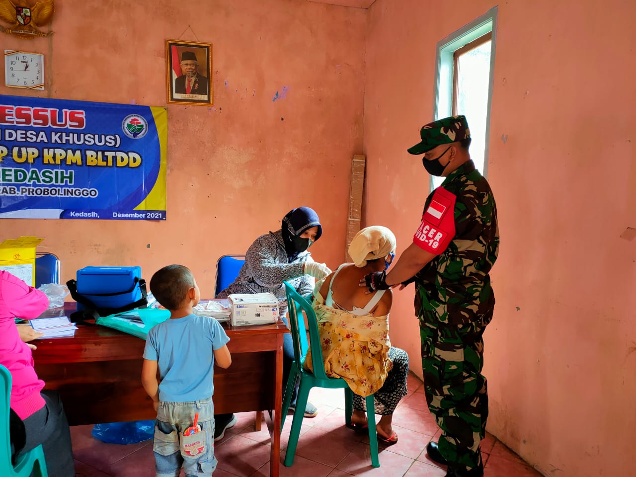 Tidak terkecuali wilayah Desa kedasih, kecamatan Sukapura, yang berada di lereng gunung Bromo kabupaten Probolinggo, dilaksanakan Vaksinasi oleh Nakes puskesmas didampingi Anggota Koramil 0820/08 Sukapura, Jumat (03/12/2021).