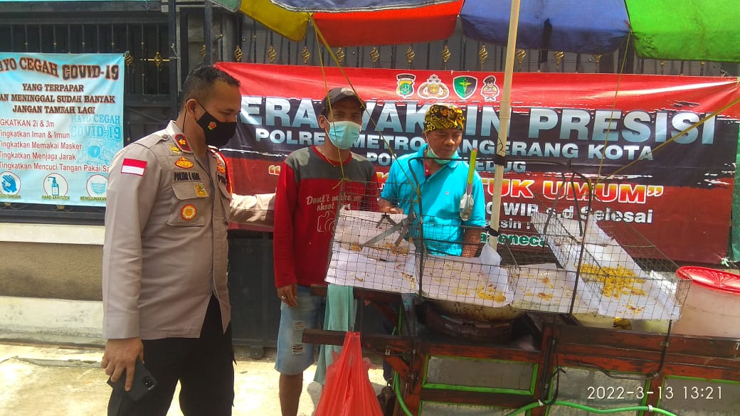 PENJURU.IDICILEDUG-TANGERANG–Kapolsek Ciledug Kompol Poltar L Gaol. S.Si.,M.H., kunjungi masyarakat laksanakan vaksinasi booster untuk anak dan lansia pada Minggu, (13/3/2022) di wilayah Kreo Kecamatan Larangan.