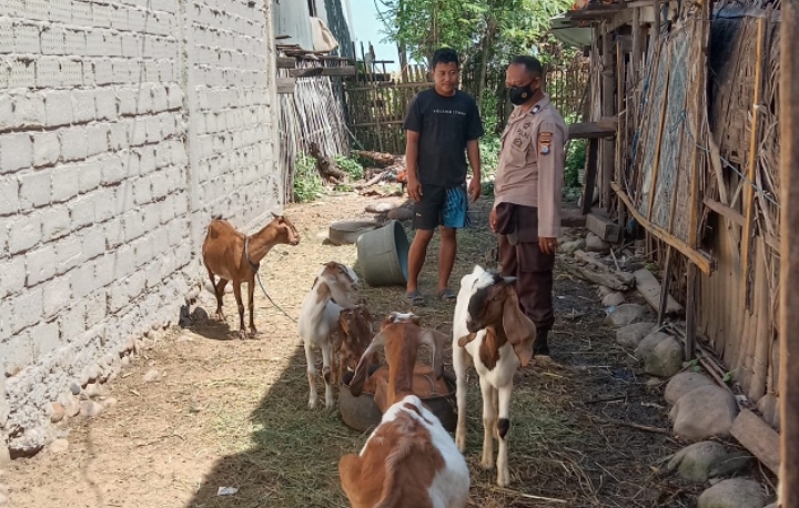 Kanit Binmas Aiptu Abdul Muthalib menjalani rutinitas melaksanakan patroli sebagai Harkamtibmas seperti terlihat saat berpatroli dan silaturahmi menyambangi pemilik ternak dalam rangka mengkomunikasikan tentang penyakit mulut dan kuku (PMK) yang sekarang ini mewabah dan menjadi perhatian pemerintah.