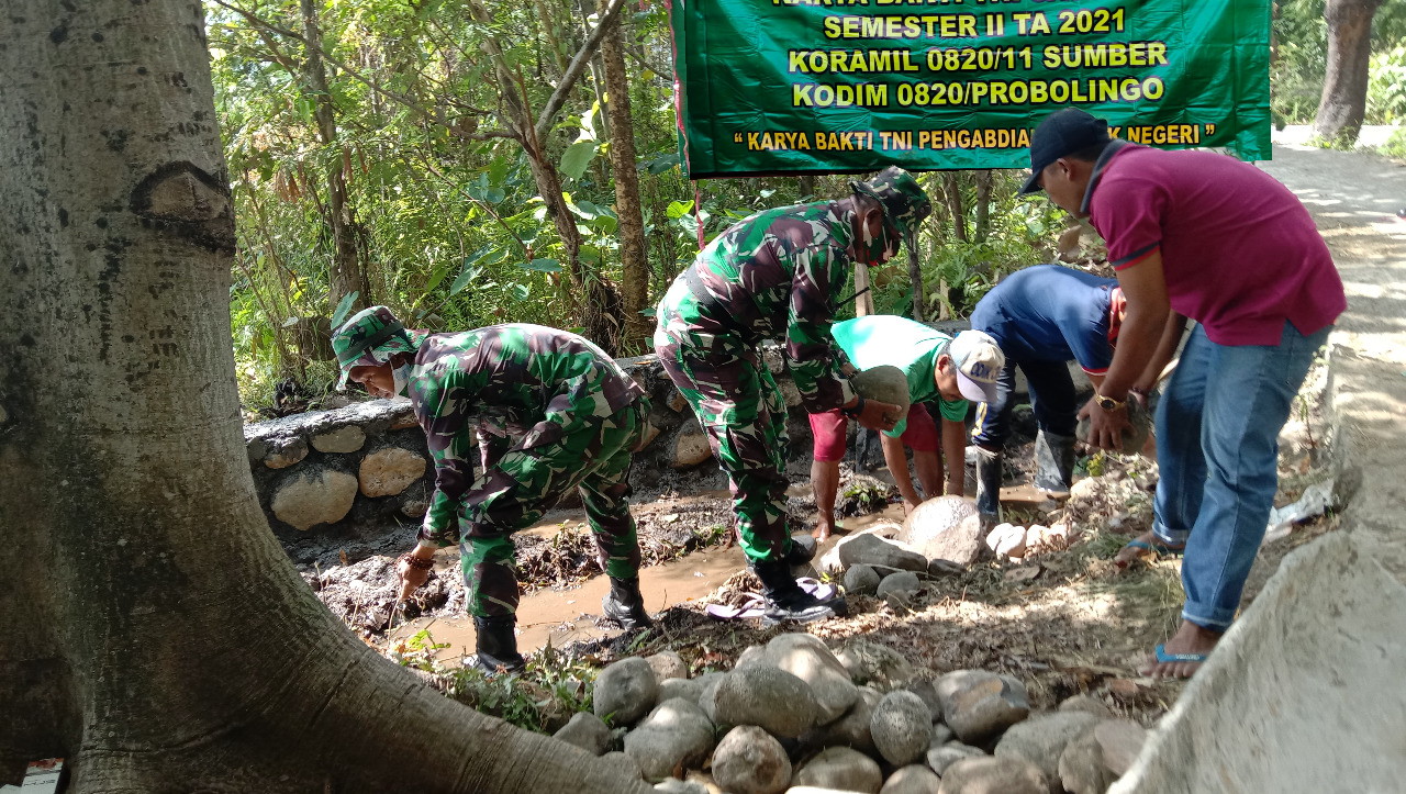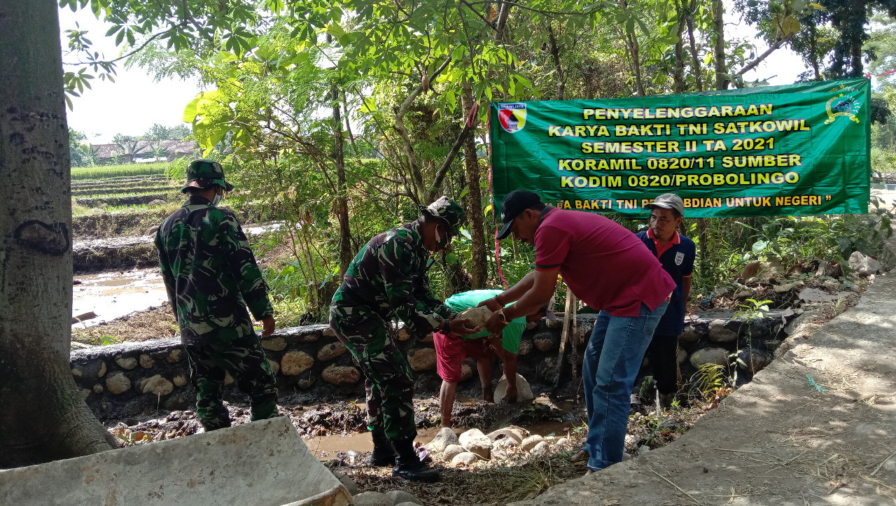 Pelda. Siswoyo, Bati Tuud Koramil 0820/11 Sumber, saat dikonfirmasi oleh Tim media di Makoramil 0820/11 Sumber mengatakan, “Pelaksanaan Karya Bakti bersama masyarakat ini merupakan salah satu wujud nyata dan peran aktif serta sumbangsih TNI, khususnya aparat kewilayahan kepada rakyat di daerah serta sebagai wujud kemanunggalan TNI dengan rakyat yang semakin erat, dimana dengan bersama rakyatlah maka TNI akan semakin kuat dalam menjaga dan mengawal kedaulatan bangsa dan negara Indonesia yang kita cintai bersama,” ucapnya.