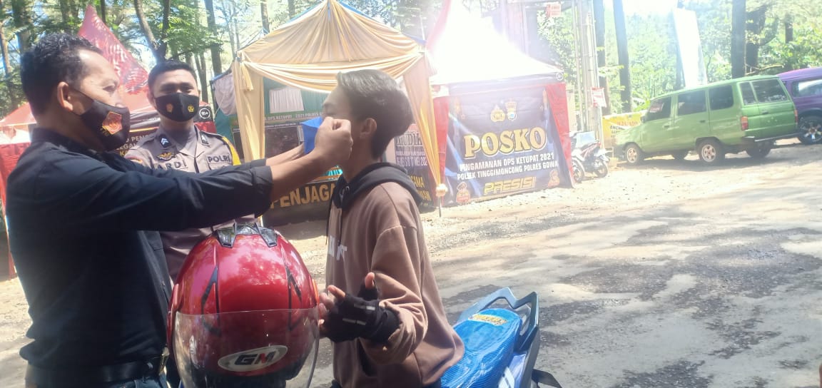 Masyarakat yang tidak menggunakan masker kebetulan melintas di posko ketupat hutan pinus Malino langsung di berikan teguran untuk selalu mengikuti protokol kesehatan.