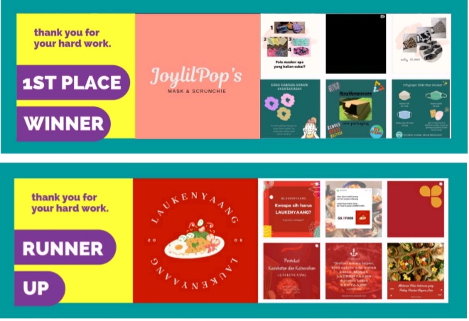 Atas kreatifitasnya, pemenang pertama dan kedua mendapatkan reward masing-masing sebesar Rp. 200.000,- sebagai tambahan modal usaha dan tidak lupa peserta lain juga menerima reward berupa virtual money dengan total Rp. 450.000,- karena telah berpartisipasi dan belajar bersama Mari Digital dalam memperkuat branding secara digital pada usahanya masing-masing.