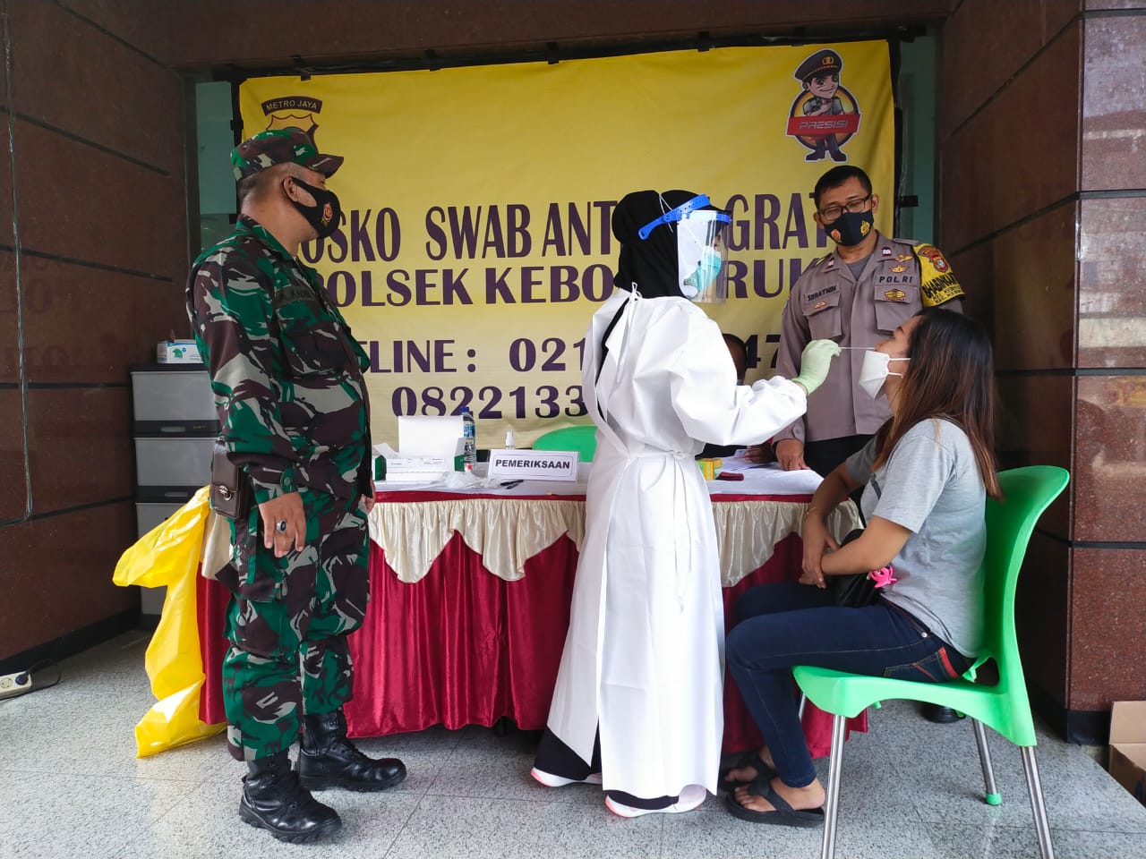 Kapolsek menyampaikan pelaksanaan Swab Antigen secara gratis merupakan bentuk kepedulian Polri, khususnya Polsek Kebon Jeruk bersama Tiga Pilar dalam memutus mata rantai penyebaran Covid-19.