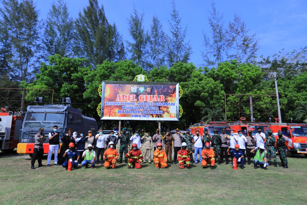 PENJURU.ID | Aceh Tamiang – Pemerintah Kabupaten Aceh Tamiang bersama Forkopimda melaksanakan Apel Gelar Kesiapan Personil, Peralatan dan Simulasi Penanganan Kebakaran Hutan dan Lahan (Karhutla) bertempat di Lapangan Upacara belakang Kantor Bupati, Rabu (10/03/21). Apel ini diinisiasi oleh Badan Penanggulangan Bencana Daerah Kabupaten aceh Tamiang bekerjasama dengan berbagai unsur seperti TNI,Polri dan Satgas Tanggap Bancana lainnya dalam Penanganan Karhutla di wilayah Kabupaten Aceh Tamiang agar berjalan optimal.