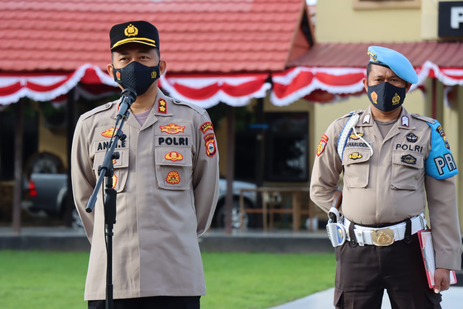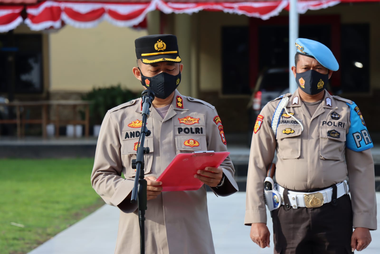“Kita bersyukur masih diberikan nikmat kesehatan hingga dapat melangkahkan kaki menuju tempat apel pagi.” ucap AKBP Andi Erma Suryono