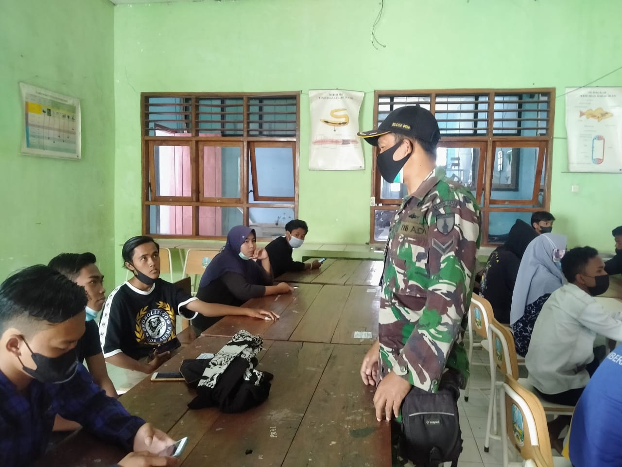 PENJURU.ID | Probolinggo – Babinsa Koramil 0820 /06 Sumberasih bersama Babinkamtibmas dan Nakes melaksanakan pengamanan sekaligus monitoring kegiatan penyuntikan vaksin covid-19, kepada para pelajar di SMPN 4 dan SMAN I Sumberasih Kecamatan Sumberasih, Kabupaten Probolinggo.