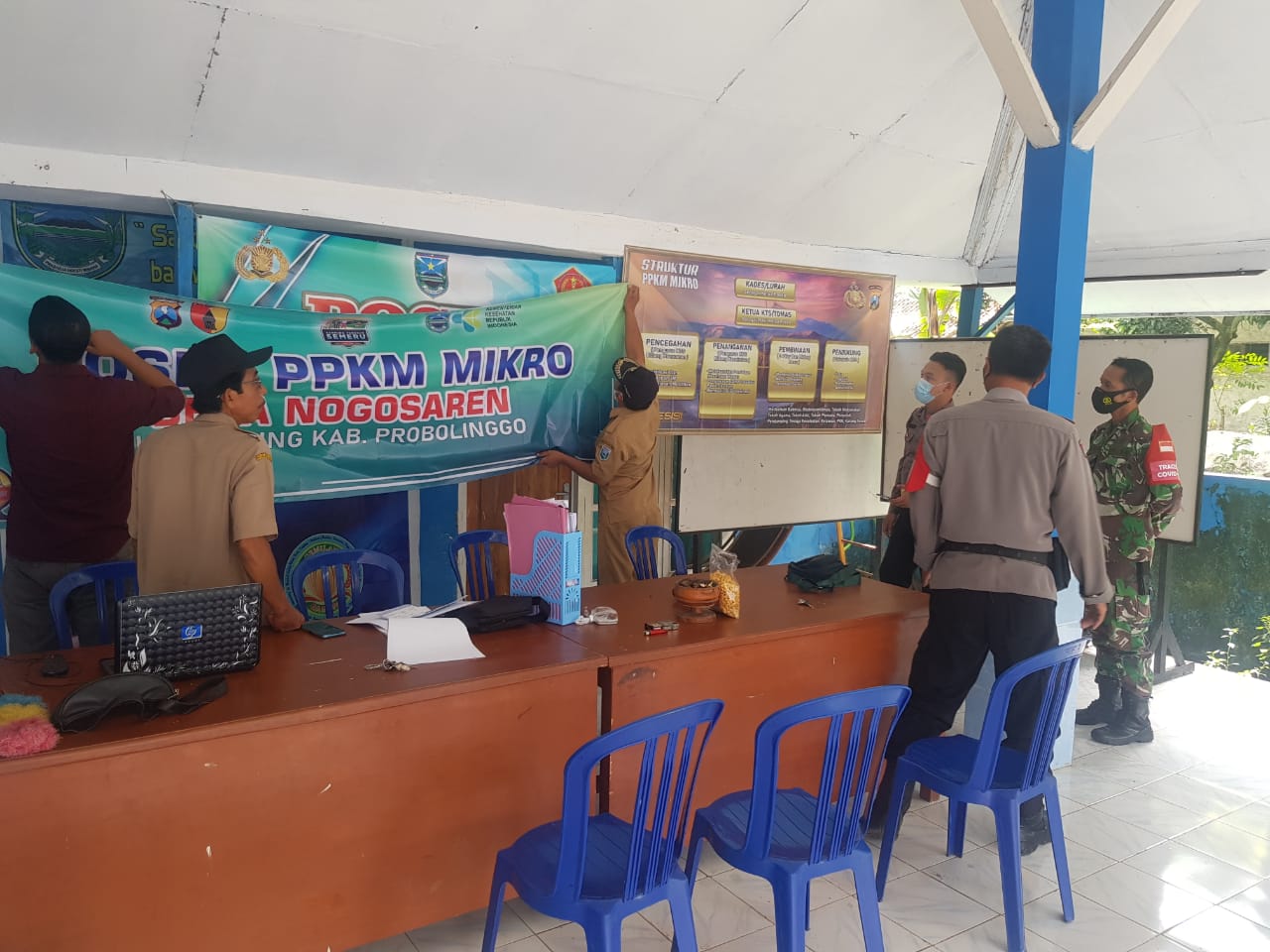 Seperti yang telah di laksanakan Babinsa Nogosaren, Serda. Masbahul, bersama Bhabinkamtibmas Aiptu. Bambang, serta Kepala Desa Nogosaren, Latif melaksanakan pemasangan banner posko PPKM skala mikro di kantor Desa Nogosaren, Kecamatan Gading, Kabupaten Probolinggo