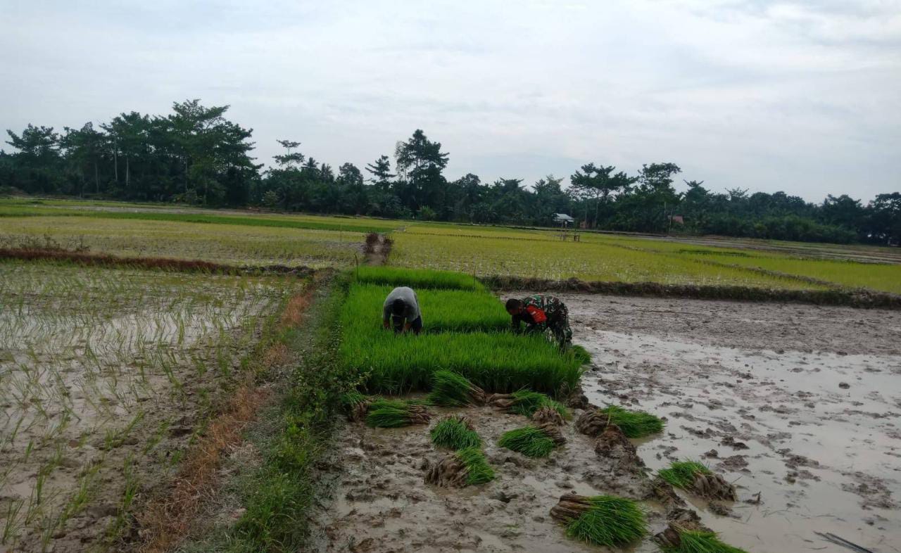 PENJURU.ID | Aceh Tamiang – Babinsa Koramil 03/Seruway, jajaran Kodim 0117/Aceh Tamiang, Serda Edi Purnawan melaksanakan pendampingan pencabutan benih padi siap tanam, di lahan milik Bapak Aiyub salah satu Kelompok Tani Bangun Trisno di Desa. Sungai kuruk 1, Kecamatan. Seruway Kabupaten. Aceh Tamiang. Senin (02/08/2021).