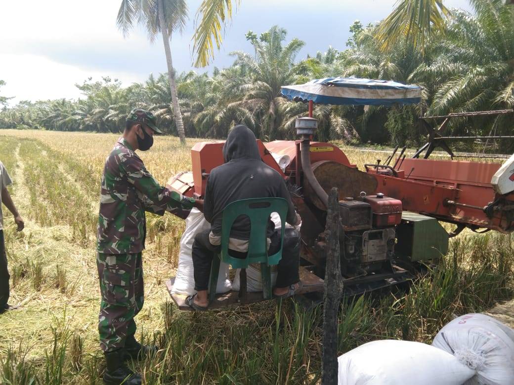 Danramil 04/Bendahara Kapten Inf Said Muhammad mengatakan, pada panen padi di areal pertanian milik warga tersebut menggunakan mesin modern berupa alat pemanen padi Komben (wheat harvest).