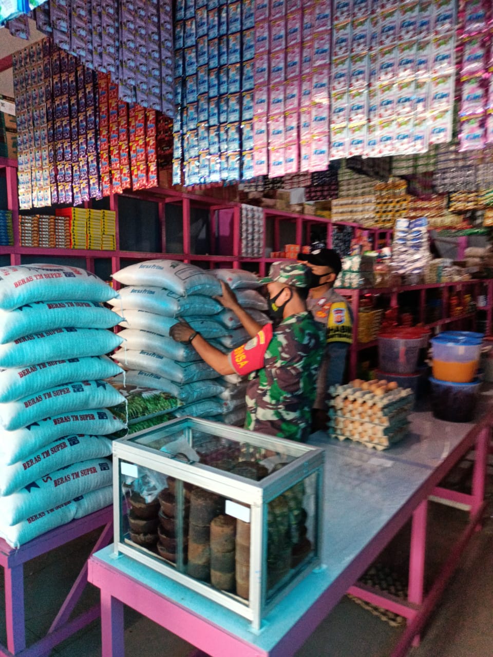 PENJURU.ID | Aceh Tamiang – Dalam rangka memastikan ketersediaan bahan kebutuhan pokok bagi warga di tengah masa pandemi Covid-19, anggota Babinsa Koramil 04/Bendahara Serda A. Hasibuan bersama Babinkamtibmas melakukan pengecekan harga sembako dan memastikan ketersediaan pasokan sembako di Pasar Kecamatan Bendahara Kabupaten Aceh Tamiang. Senin (07/03/22).
