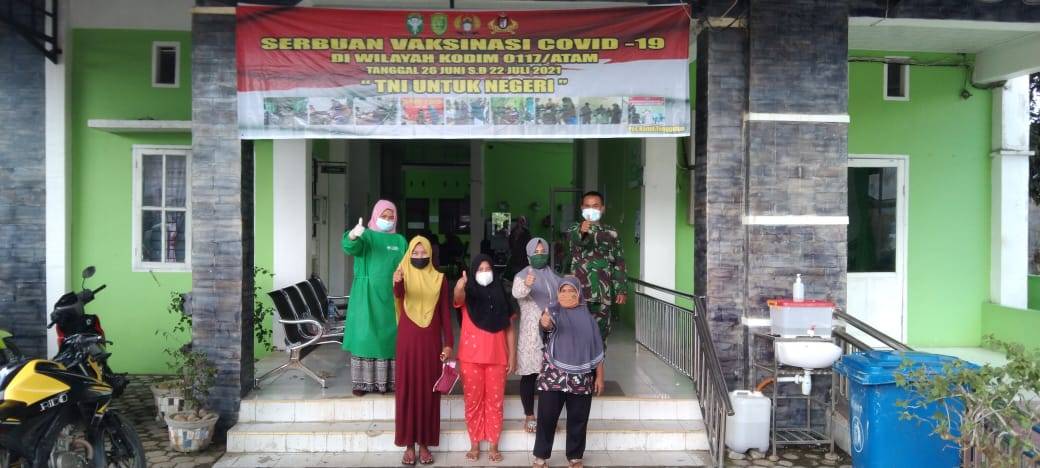 Pendim 0117/Atam dalam rilisnya menerangkan, Babinsa melakukan pendampingan dalam pelaksanaan penyuntikan vaksinasi masal Covid-19 tahap l dan II untuk Masyarakat yang dilakukan oleh Petugas Kesehatan Puskesmas Kejuruan Muda,