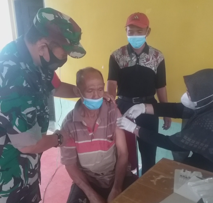 PENJURU.ID | Aceh Tamiang – Babinsa Koramil 08/Rantau, Kodim 0117/Atam, Sertu Subagioh melakukan pendampingan dalam pelaksanaan Vaksinasi Covid 19 terhadap Pelayanan Publik, Lansia, Anak dan Masyarakat Umum yang dilaksanakan oleh Puskesmas Rantau bertempat di Wilayah Puskesmas Rantau, Kecamatan Rantau, Kabupaten Aceh Tamiang. Selasa (22/03/2022).