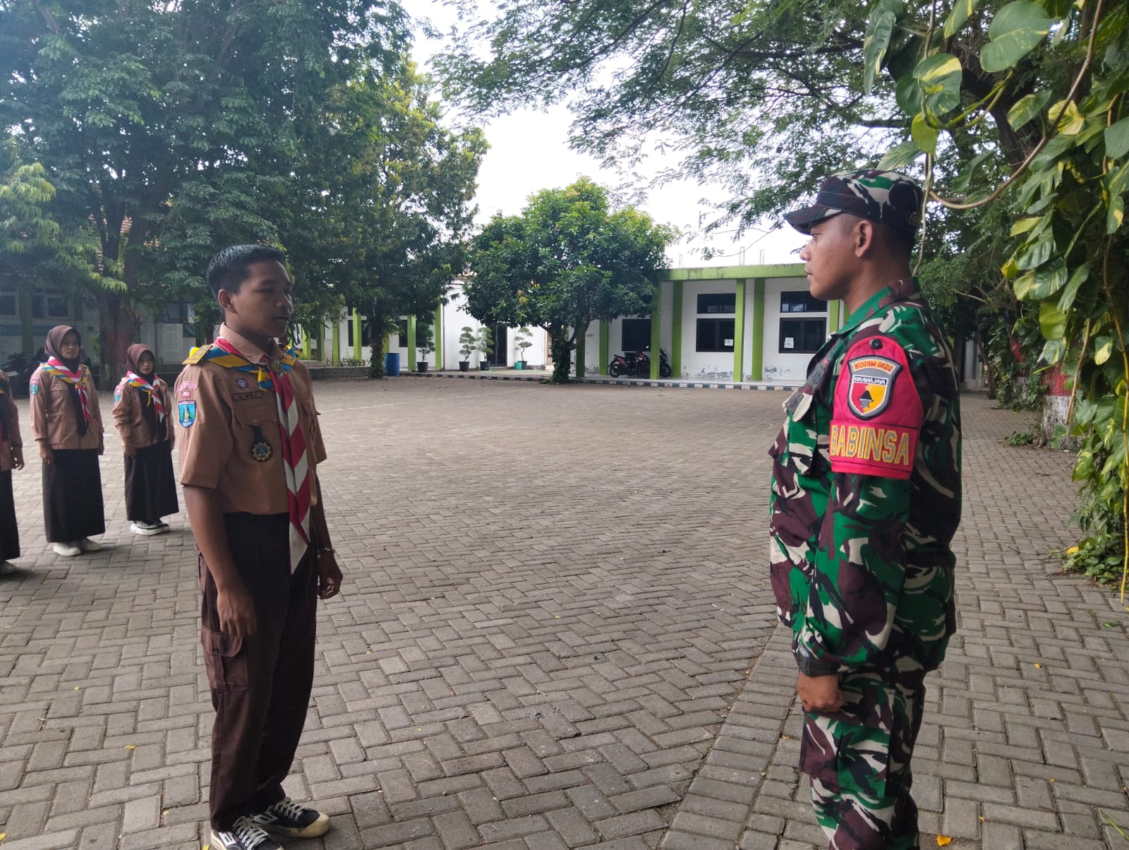 PENJURU.ID | Probolinggo – Upaya menumbuhkan karakter disiplin dan semangat kebangsaan di kalangan pelajar, Serka Agus Budiono, Babinsa Desa Klenang Lor anggota Koramil 0820-20/Banyuanyar, memberikan pembinaan kepada para siswa Pramuka SMKN Banyuanyar melalui kegiatan Extra Latihan Disiplin Dasar Peraturan Baris Berbaris (PBB), Sabtu (11/10/2025).