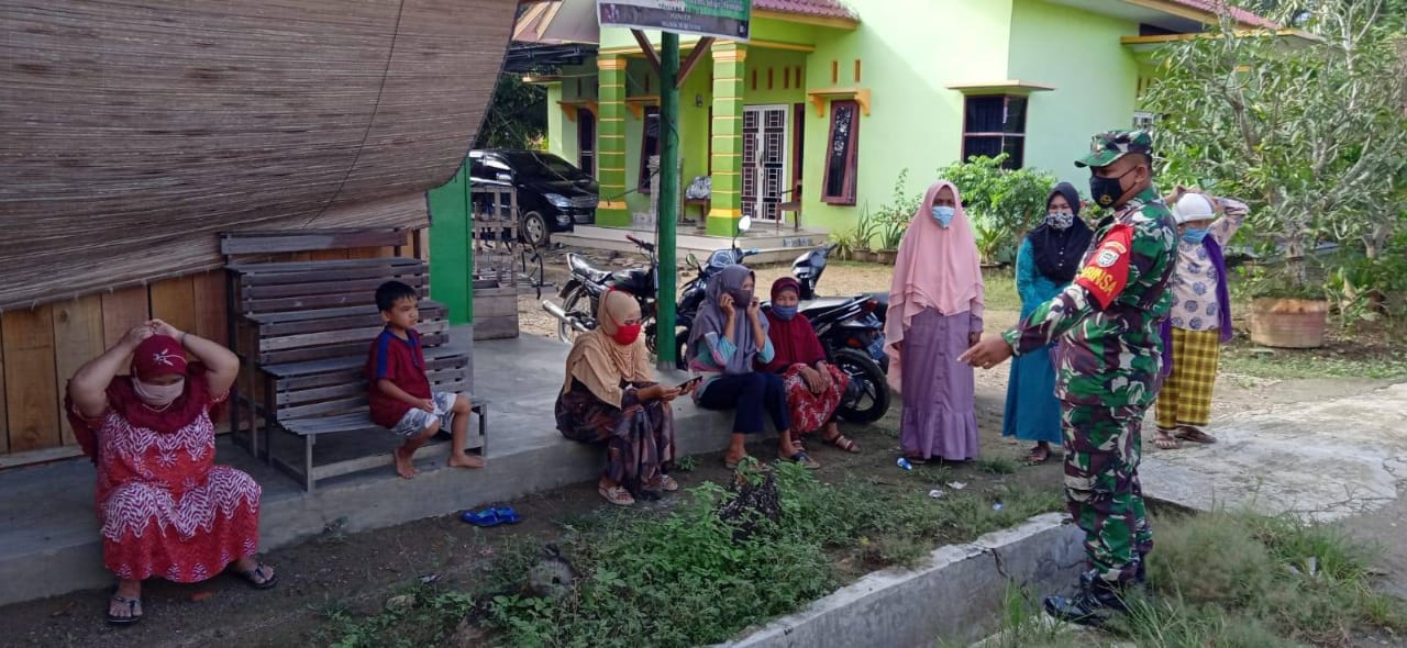 PENJURU.ID | Aceh Tamiang – Dalam rangka mencegah dan mengantisipasi penyebaran Covid-19, Babinsa Koramil 02/Karang Baru Jajaran Kodim 0117/Aceh Tamiang Koptu Adi Syahputra menghimbau dan mengingatkan masyarakat untuk selalu memakai masker bertempat di Desa. Lubuk Sidup, Kecamatan. Sekerak, Kabupaten. Aceh Tamiang. Sabtu (21/08/2021).