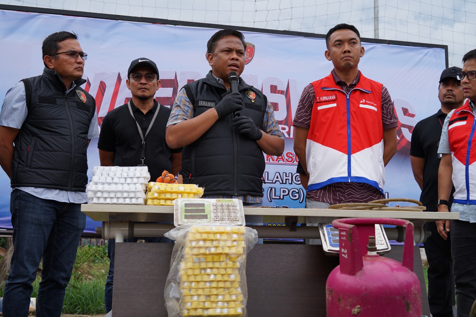 “Kami menindaklanjuti laporan masyarakat mengenai kegiatan mencurigakan yang diduga sebagai penyuntikan gas, yang berpotensi mengakibatkan kelangkaan LPG 3 kg bersubsidi di wilayah tersebut,” jelas Brigjen Pol. Moh. Irhamni.