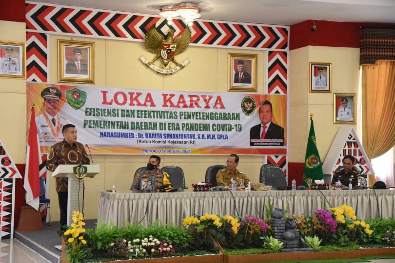 PENJURU.ID | Tapsel – Kecintaan Bupati pada Tapanuli Selatan (Tapsel) akan menjadi kenangan yang indah. Hal itu disampaikan Ketua Komisi Kejaksaan RI Barita Simanjuntak pada acara Lokakarya Efisiensi dan Efektivitas Penyelenggaraan Pemerintahan Daerah di Era Pandemi Covid-19, Senin (1/2/2021) bertempat di Gedung Aula Sarasi II Lantai III Kantor Bupati Tapsel di Sipirok.