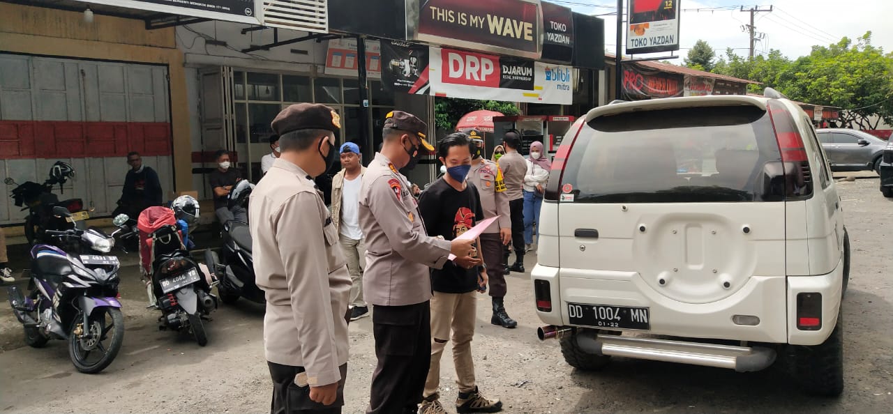 Pemeriksaan di pintu masuk kota Malino untuk mengantisipasi terjadinya cluster baru dan penyebaran virus covid19 di kecamatan Tinggimoncong.