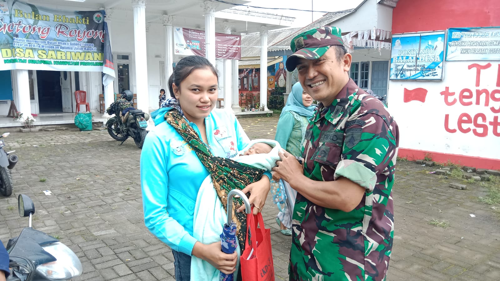 Untuk memberikan rasa aman dan nyaman, anggota Koramil 0820/08 Sukapura Pelda Dodik melaksanakan pendampingan terhadap kegiatan yang dilaksanakan oleh Posyandu Desa Sariwani. Dalam penuturannya Pelda Dodik menyampaikan bahwa sebanyak 42 Balita akan mendapatkan imunisasi Campak, BGT, maupun DPT.