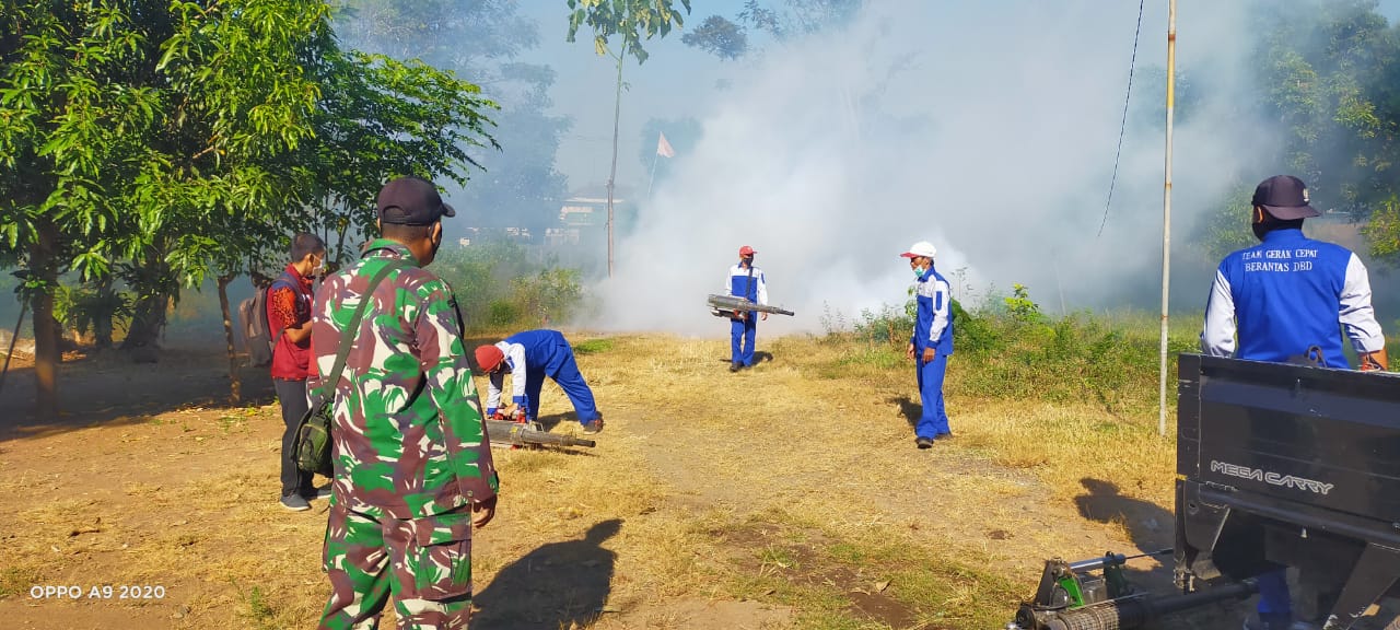 “Antisipasi tumbuh kembang nyamuk aides aigepty yang membahayakan yang bisa menyebabkan demam berdarah, Batituut bersama anggota Koramil Wonoasih dan dinas kesehatan melakukan penyemprotan Fogging di sekitar Koramil 0820/02 Wonoasih, serta membersihkan barang baik kaleng bekas maupun bak air, agar tidak bisa digunakan sebagai sarang nyamuk serta jentik jentik nyamuk aides aigepty, ucap,” Pelda. Yusuf Wahyudin.