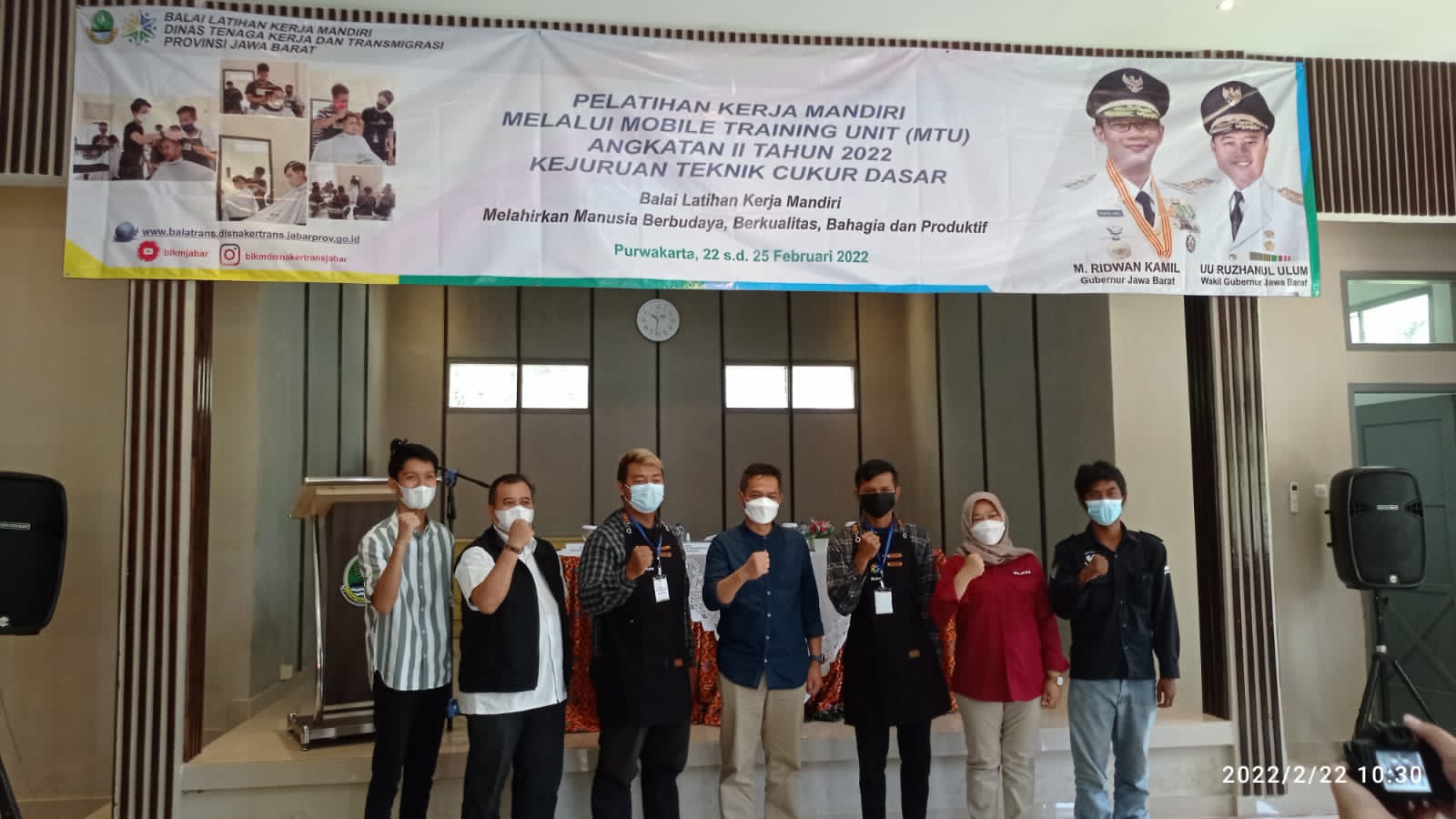 PENJURU-ID,Purwakarta-,Ormas kepemudaan Buah Batu Corps Skills Korwil Kabupaten Purwakarta,Bermitra dengan Disnakertrans Jawa Barat,Disnakertrans Kabupaten Purwakarta Serta pengusaha Barber Shop.Giat Mobile Training Unit Angkatan II Tahun 2022 kejuruan tehnik cukur dasar yang bertempat di Aula BLK Disnaketrans Kabupaten Purwakarta.Selasa (22/02/2022).