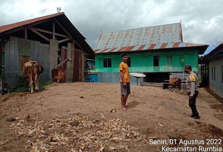 “Sasaran patroli guna melakukan sosialisasi dan penyuluhan kepada para peterna secara pribadi di Dusun Kampung Beru Desa Bontomanai Kecamatan Rumbia Kabupaten Jeneponto, Senin (01/08/2022)