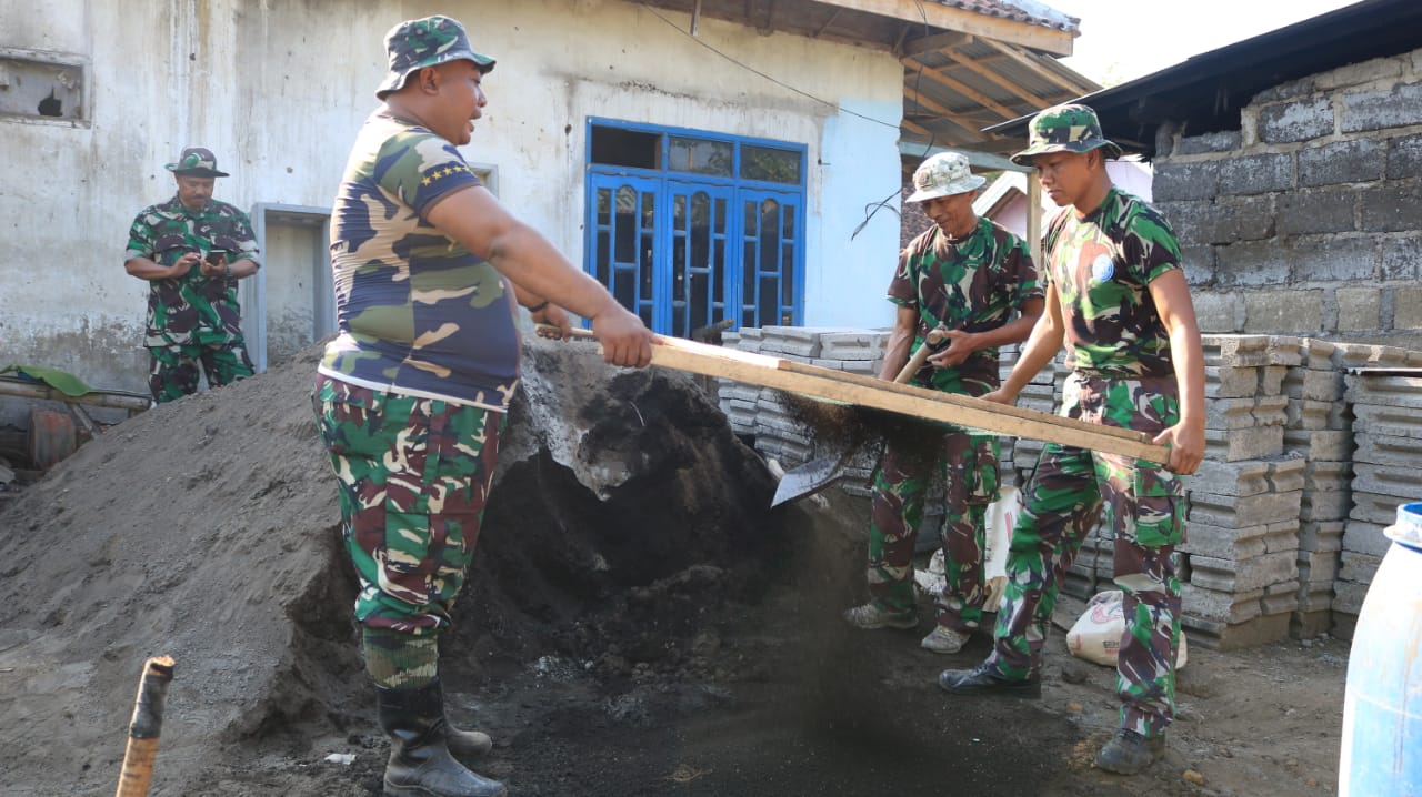 PENJURU.ID | Probolinggo – Renovasi Rumah Tinggal Tidak Layak Huni (RTLH) Nenek Misarah (81) seorang buruh tani yang bertempat tinggal di Dusun Dawuhan RT 25 RW 07 Desa Klampok Kecamatan Tongas Kabupaten Probolinggo yang diprogramkan oleh Satgas Tentara Manunggal Membangun Desa (TMMD) 114 kini telah memasuki tahap ke dua.