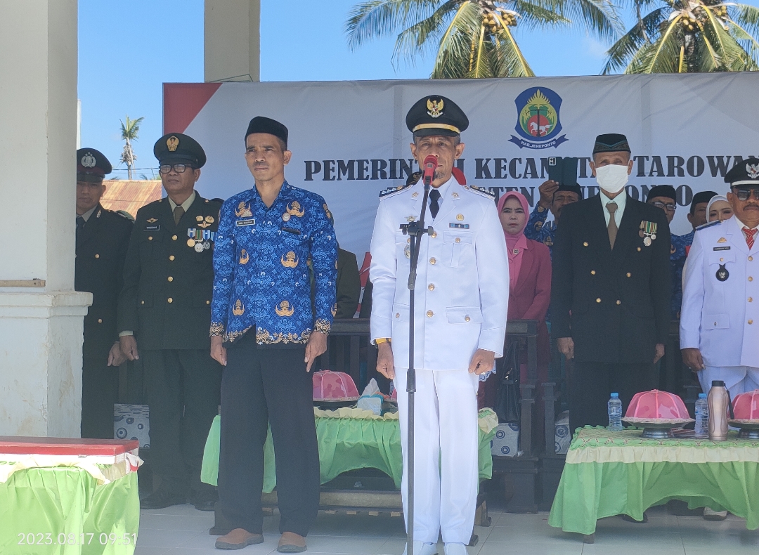 PENJURU. ID | Jeneponto – Peringatan Hari Ulang Tahun Republik Indonesia (HUT RI ke-78 di Kecamatan Tarowang mulai dari pengibaran sangsaka merah putih dilanjutkan rangkaian gerak jalan hingga pada penurunan bendera berlangsung meriah penuh khidmat.