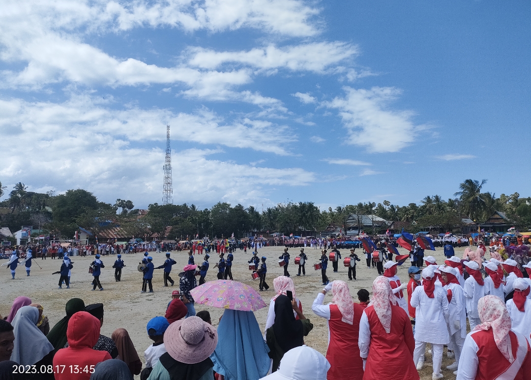 Antusias peserta dan para pengunjung di HUT ke 78 tahun ini nampak berbeda dari tahun-tahun sebelumnya. cuaca begitu panas namun itu tidak menjadi penghalang untuk mengikuti dan menyaksikan langsung pelaksanaan gerak jalan.