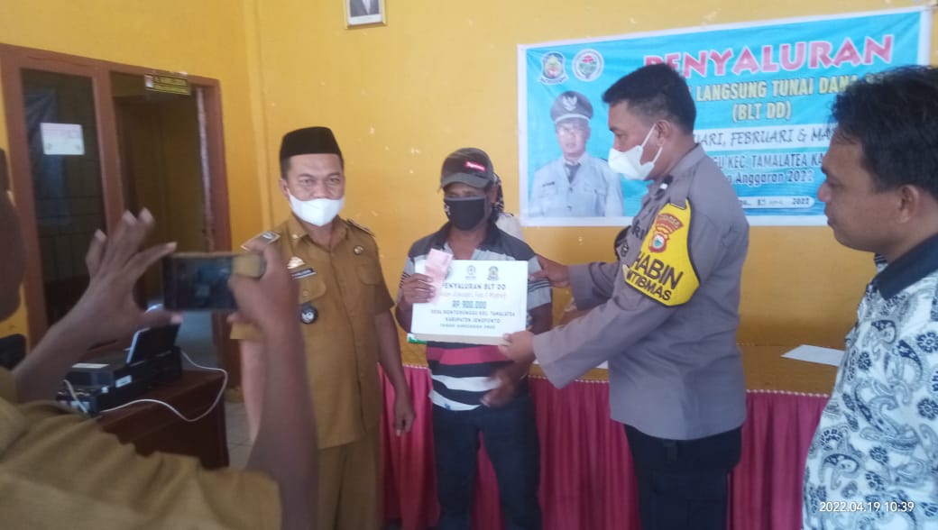 PENJURU. ID | Jeneponto – Bhabinkamtibmas Aipda Abd Rahim melaksanakan giat patroli sambang kewilayah binaan serta memantau pelaksanaan penyaluran bantuan langsung tunai (BLT) DD tahun anggaran 2022.