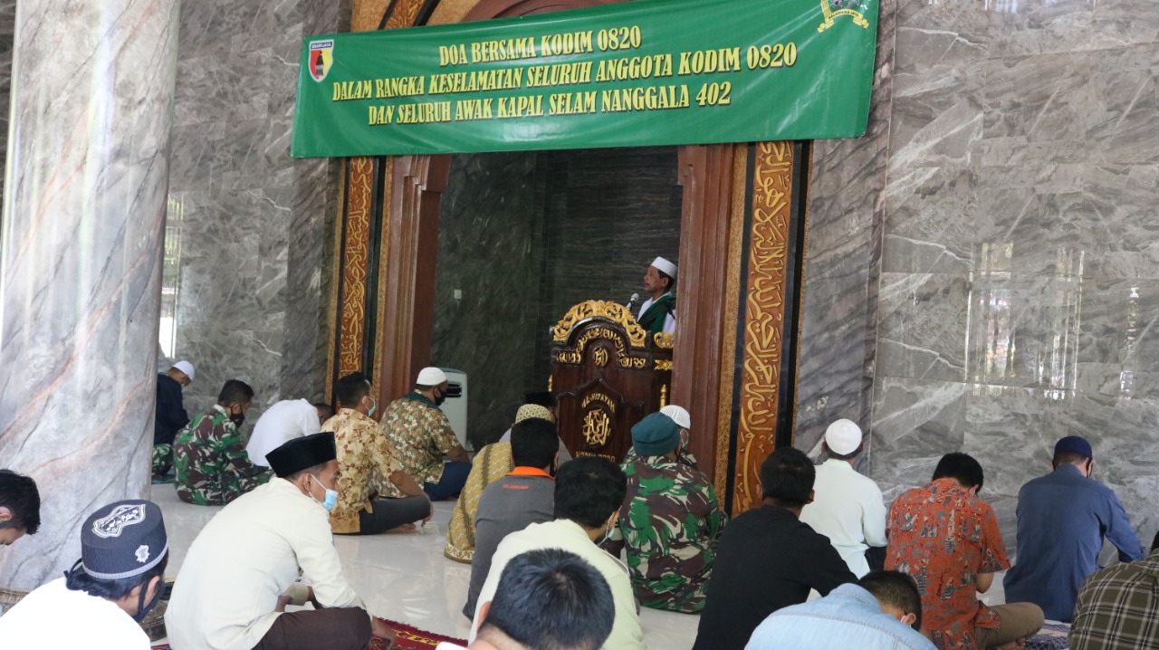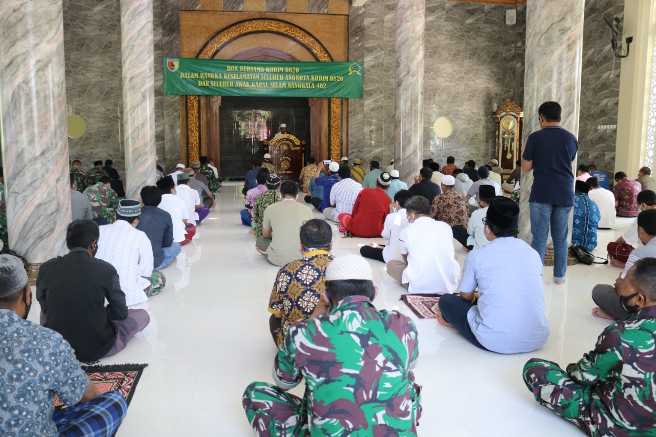 Proses pencarian terus dilakukan dengan harapan 53 awak kapal selamat, Doa pun terus mengalir deras, Puluhan jemaah Masjid Al-Hidayah Kodim 0820/Probolinggo, yang terdiri dari warga Kota Probolinggo, bersama prajurit dan ASN Kodim 0820/Probolinggo, menggelar Do’a bersama bagi keselamatan kru kapal selam KRI Nanggala 402 agar segera ditemukan dalam kondisi selamat.