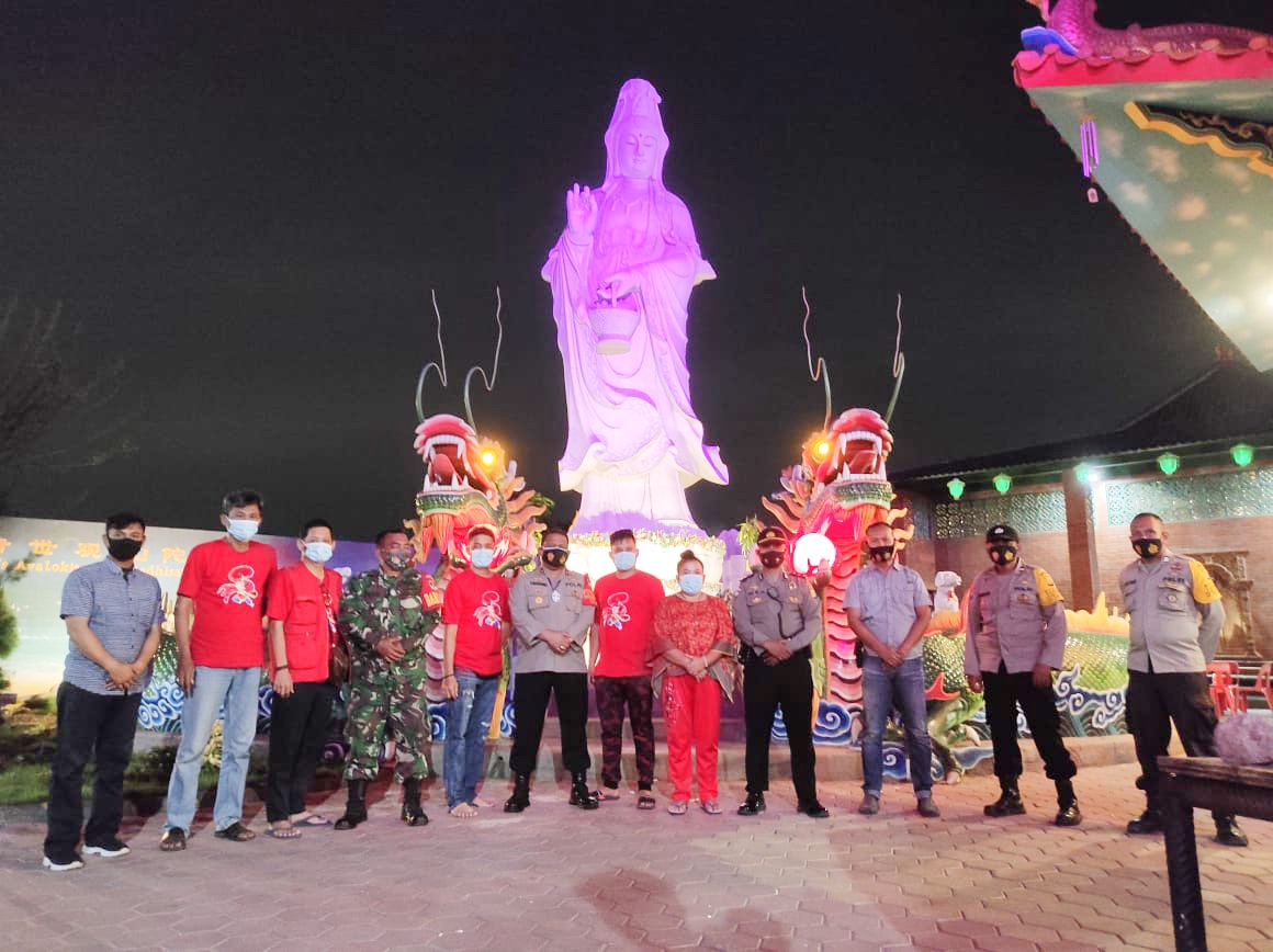 “Perhatikan disiplin protokol kesehatan seperti tamu wajib menggunakan masker, cek suhu tubuh dan cuci tangan sebelum masuk ke Vihara serta jaga jarak,” katanya, didampingi Panit 2 Binmas, Ipda Eko Yulianto, Babinsa dan Binamas.